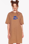 Šaty volného áčkového střihu s prošívanými detaily na rukávech vytvářející „naruby“ efekt. S kapsami a širšími, ležérními rukávy.