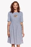 Ležérní šaty mírně empírového střihu se širším 3/4 rukávem jsou jako jediné z naší nabídky přestřižené v pase a tak ve vaší standardní velikosti nepůsobí oversized. V případě, že šaty plánujete nosit oversize a rozhodujete se mezi dvěma velikostmi, zvolte raději o číslo větší.
