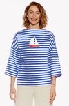 Vzdušné pohodlné japonské tričko se širokým 7/8 rukávem a rovným lodičkovým výstřihem.