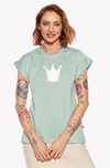 Das Damen-T-Shirt mit dem Effekt hochgekrempelter Ärmel wird besonders von Frauen geschätzt, die einen schmalen Schnitt gegenüber einem Maxi-T-Shirt bevorzugen.