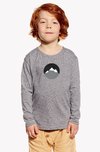 Egy gyerek póló, laza átlagos szabással és hosszú ujjal.