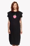 Ez a hosszú egyenes ruha, fodros ujjakkal, a női pólóink evolúciója, amelyet a térd alatt meghosszabbítottunk.