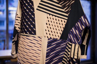 When talking about creating clothes out of different geometrical patterns, I liked that before, too. Part of my thesis collection was also a very similar assembling of small pieces of fabric into specific models. The difference was only that I did not work with fabric leftovers per se, then.
