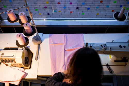 The ZeroWaste (“Bezodpadu”) collection, created from fabric leftovers from the production of our squeaky T-shirts in our clothing factory, attracts much attention. Because designing and sewing clothes from small pieces of fabric is very time-consuming, we decided to introduce a new member to our team.