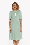 This casual dress with a semi-empire silhouette and loose 3/4 sleeves is the only dress in our portofolio with a cut waist, which makes it not look oversized in your regular size. If you do, however, decide to wear it as an oversized dress, choose the larger of the two sizes closest to your actual size.