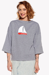 A breezy comfortable Japanese T-shirt with wide 7/8 sleeves and a boat neckline.
