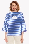 A breezy comfortable Japanese T-shirt with wide 7/8 sleeves and a boat neckline.