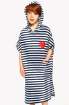 Im Sommer sprintet es aus dem Wasser, und du versuchst, es mit einem Handtuch abzutrocknen, aber es ist ganz anderer Meinung. Trotz seiner blauen Lippen hat dein Kind keine Zeit für Unsinn, denn es möchte sofort seine Pommes. Wir verstehen das vollkommen. Dieser praktische Baumwollponcho, der sich ruckzuck überziehen lässt, wird dir den Tag retten. Dank 100% Baumwolle kann die Haut frei atmen. Er ist in drei Größen erhältlich und ist unisex.
