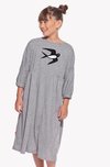 Knee-length girl dress with pleats on the front and back. Comfortable 7/8 lenght sleeves are finished with an elastic band. The dress has pockets.