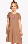 A wide, loose A-line dress with a moderately pleated skirt. Available either with long sleeves for cold weather, or with short sleeves for hot summer days.
