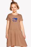 A wide, loose A-line dress with a moderately pleated skirt. Available either with long sleeves for cold weather, or with short sleeves for hot summer days.