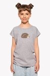 A girl's T-shirt with a loose cut and short sleeves.