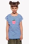 A girl's T-shirt with a loose cut and short sleeves.