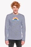 Egy férfi póló, laza szabással és hosszú ujjal.