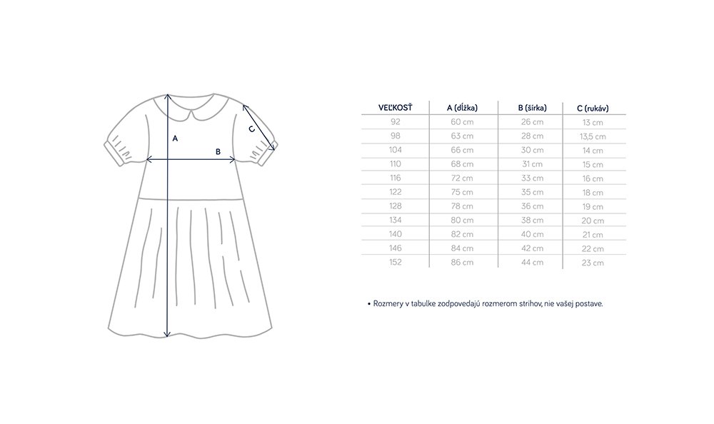 KVETA - Šaty s límčekom a dĺžkou tesne pod kolienka. Nariasené rukávy sú ukončené gumičkou, na zátylku riešené na zaväzovanie. Tieto rozkošné šaty v regular strihu nemajú vrecká. Na požiadanie vám ich ušijeme na objednávku aj v inej farbe z aktuálnej ponuky.