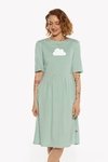This casual dress with a semi-empire silhouette and loose 3/4 sleeves is the only dress in our portofolio with a cut waist, which makes it not look oversized in your regular size. If you do, however, decide to wear it as an oversized dress, choose the larger of the two sizes closest to your actual size.