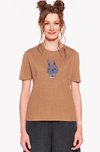 A basic women's T-shirt with short sleeves.